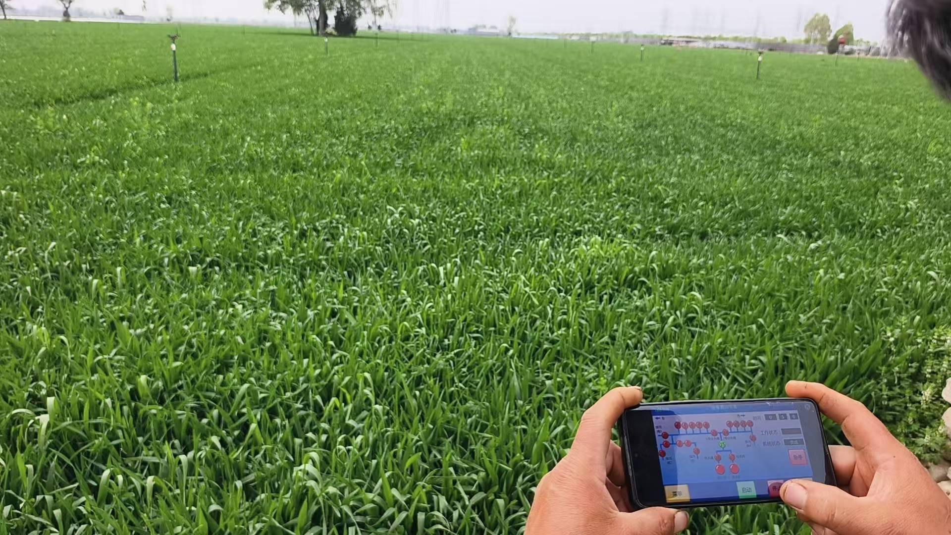 4月13日,刘现印通过手机查看农田土壤墒情等数据。新华社记者 赵鸿宇 摄刘现印说,他引进了智能灌溉物联网技术,埋在地下的传感器能够实时监测土壤墒情,并将数据同步回传至云端。基于这些数据,云端智能平台能根据小麦不同生长阶段的需水规律,自动且精准调控灌溉水量和时间。“现在单次浇水就能节省近千元成本。”他说。